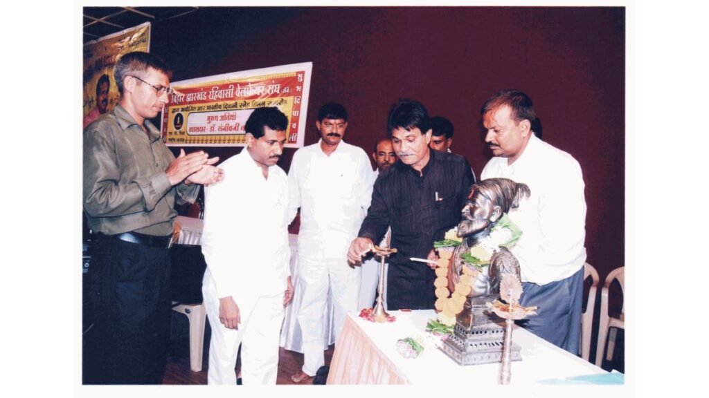 Shubh Chandra Mishra and the first Mayor of Navi Mumbai Municipal Corporation Sanjeev Ganesh Naik, lighting the lamp in the program of Bihar Jharkhand Residents Welfare Association