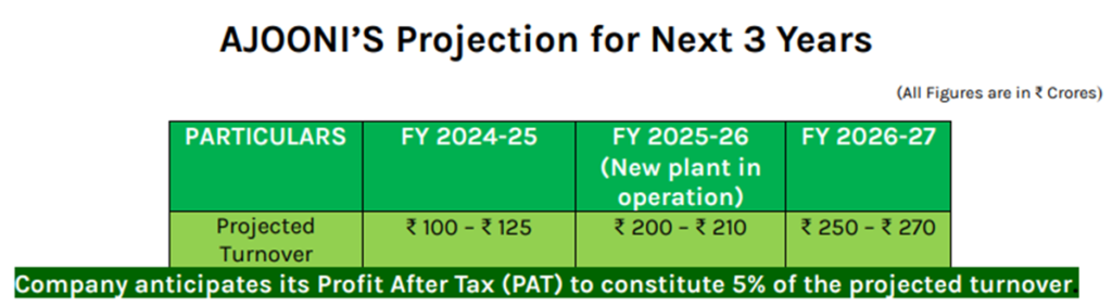 In the next 2-3 years company projects its turnover to reach in the range of Rs. 250-270 crore in FY 2026-27 and anticipates PAT margin of 5% of the turnover.