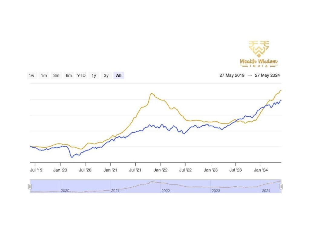 Tata Capital Limited’s stock price surged from 425 to 975, observing a 129.41% uptick in the last year. This surge is attributed to high investor demand and expectations of substantial listing gains. Nayara Energy Limited further contributed to the index’s bullish trend, observing a strong boost from 180 to 560, a 211% gain in a year. The National Stock Exchange of India (NSE) also saw its stock price grow by 82%, from 3300 to 6000 YOY, further accelerating Primex 40’s performance.