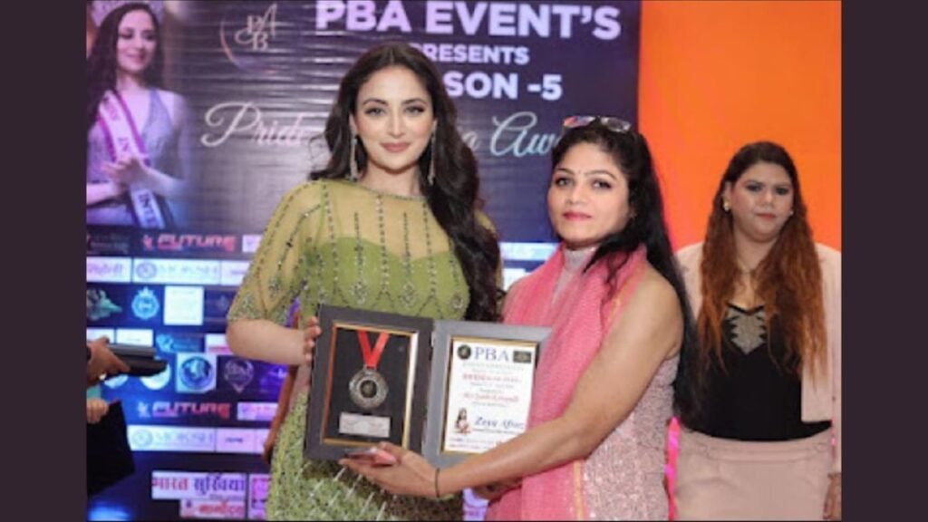 Jyothi kottapalli was presented as VIP celebrity guest for the event PBA in Delhi She received award from Actress Zoya afroz