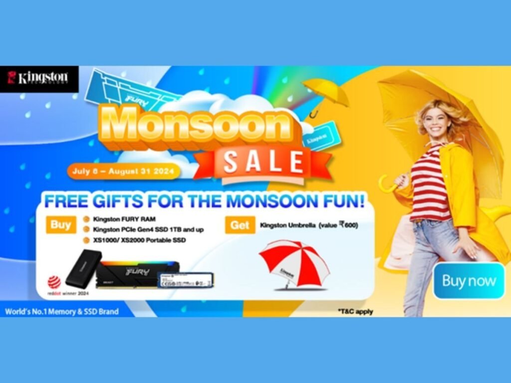 Mumbai (Maharashtra) (India) July 12 : India, July 2024 – As the monsoon season begins, Kingston Technology, a world leader in memory products and technology solutions, is offering its customers a compelling reason to enhance their computing experience- with the Kingston Monsoon Sale. Ending on August 31st, 2024, the unique Monsoon Sale, offers attractive savings on select Kingston memory and storage solutions, along with an exciting gift, absolutely free.