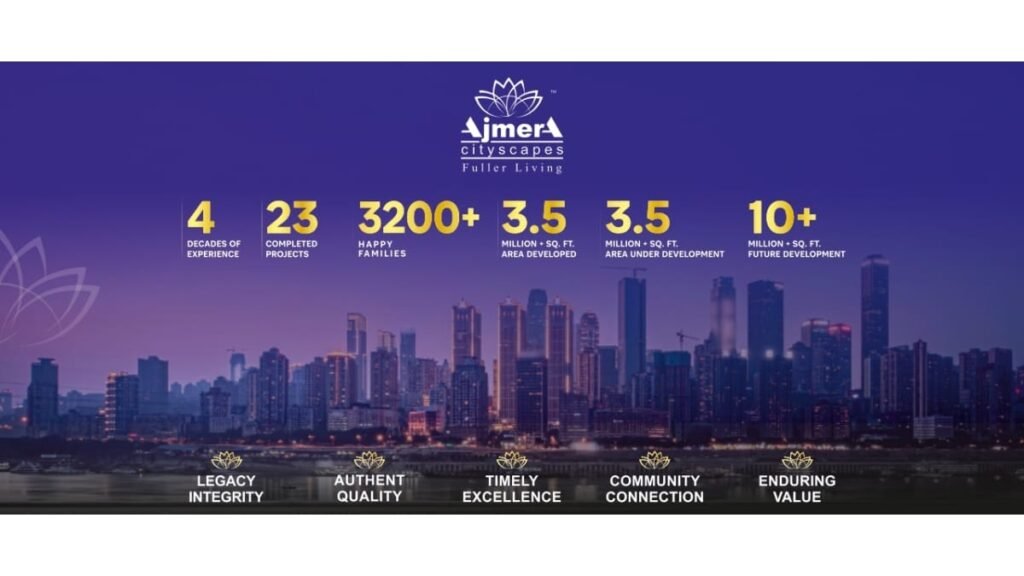 Ajmera Cityscapes’ developments reflect a rare balance of contemporary aesthetics and community-conscious design, creating environments that are beautiful, meaningful, and lasting. Its approach is rooted in customer-centricity, versatile execution, credibility, reliability, holistic design thinking, and a legacy grounded in integrity. Each value seamlessly blends to create an experience that places people over projects while upholding the promise of transparency and thoughtful craftsmanship.